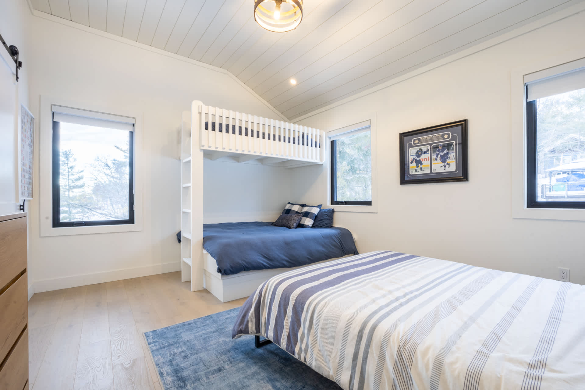 Welcome to your Trent Severn getaway, built in 2024, a spacious five bedroom retreat designed for easy group stays and laid back waterfront fun. With beds for everyone (king; queen, double, single; queen, double, single; queen; double) and two full bathrooms plus a convenient half bath, this cottage is a comfortable choice for families and friends. Pillows, blankets, linens, and towels are all included, so you can pack light and settle in right away. This property is a short drive away from Sparrow Lake.