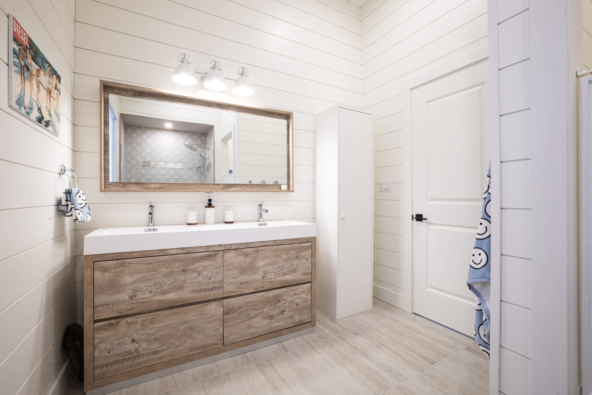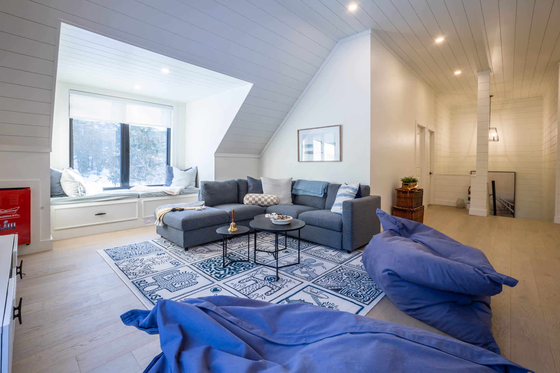 Downtime is covered with two smart TVs (85″ SMART TV on main floor & 75″ SMART TV on upper level with high end surround sound system), a selection of board games, cards, and books, plus a ping pong table for friendly competition.