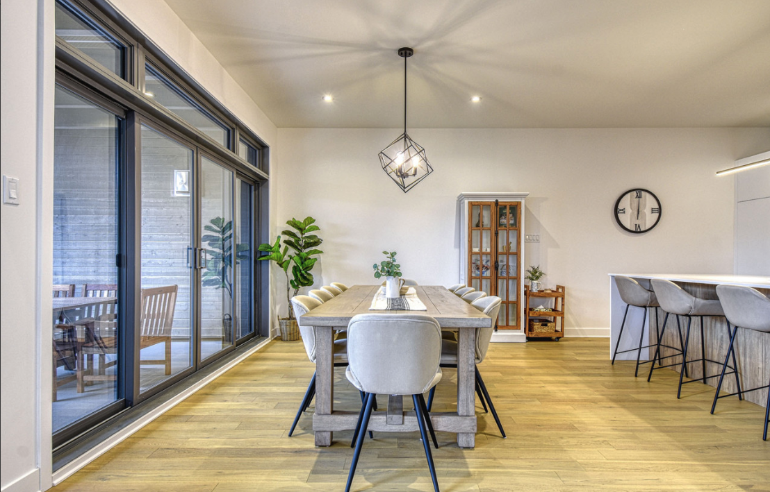 The main living area impresses with floor-to-ceiling windows framing those incredible mountain and golf course vistas, a cozy lounge for post-round chats by the fire (or just kicking back), a large dining table for group meals, and a fully equipped kitchen boasting high-end finishes and a Nespresso machine—ideal for fueling up before hitting the links or hosting victory dinners.