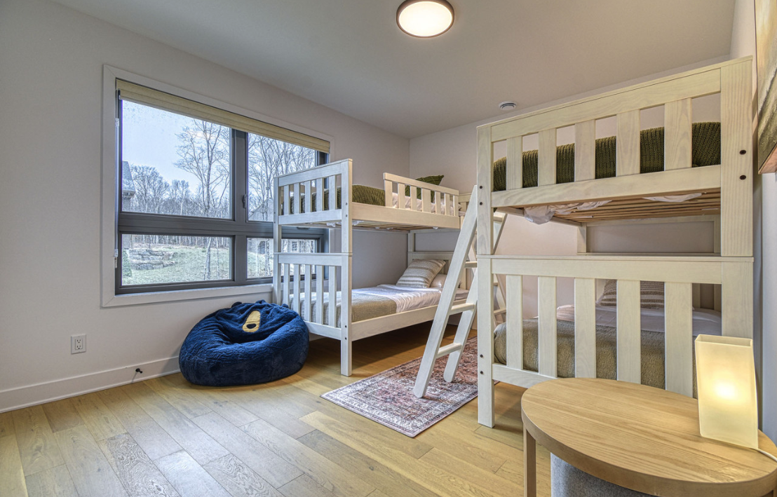 The spacious 4-bedroom, 3-bath layout sleeps up to 10 comfortably: two king bedrooms (each with private balcony access for morning coffee with course views), one queen bedroom, and a fun bunk-bed room—plenty of space for your group to unwind, share highlights from the day, or plan the next tee time. A playful “magic closet” room adds extra entertainment, while the workspace, playpen, and high chair offer convenience if needed.