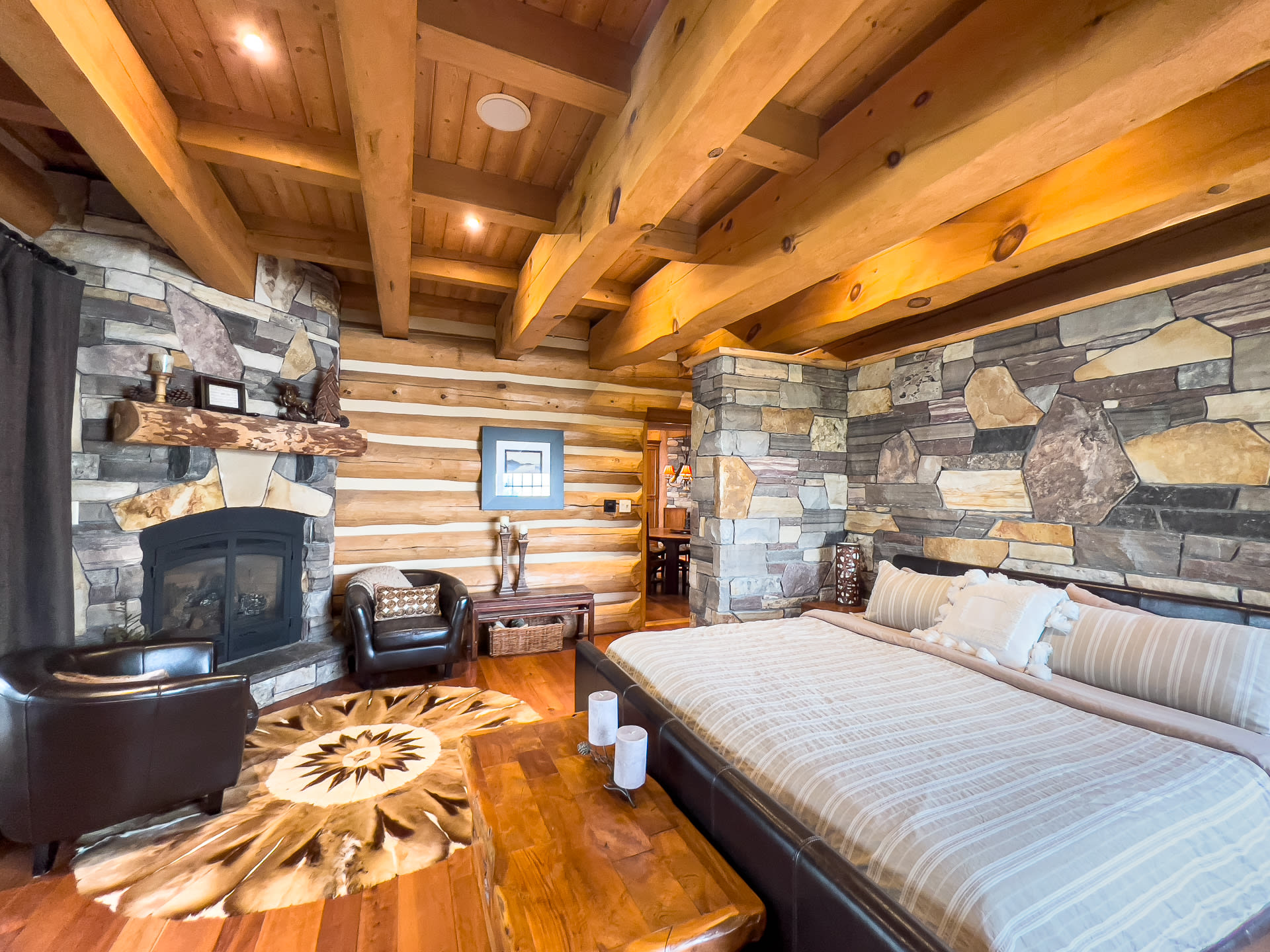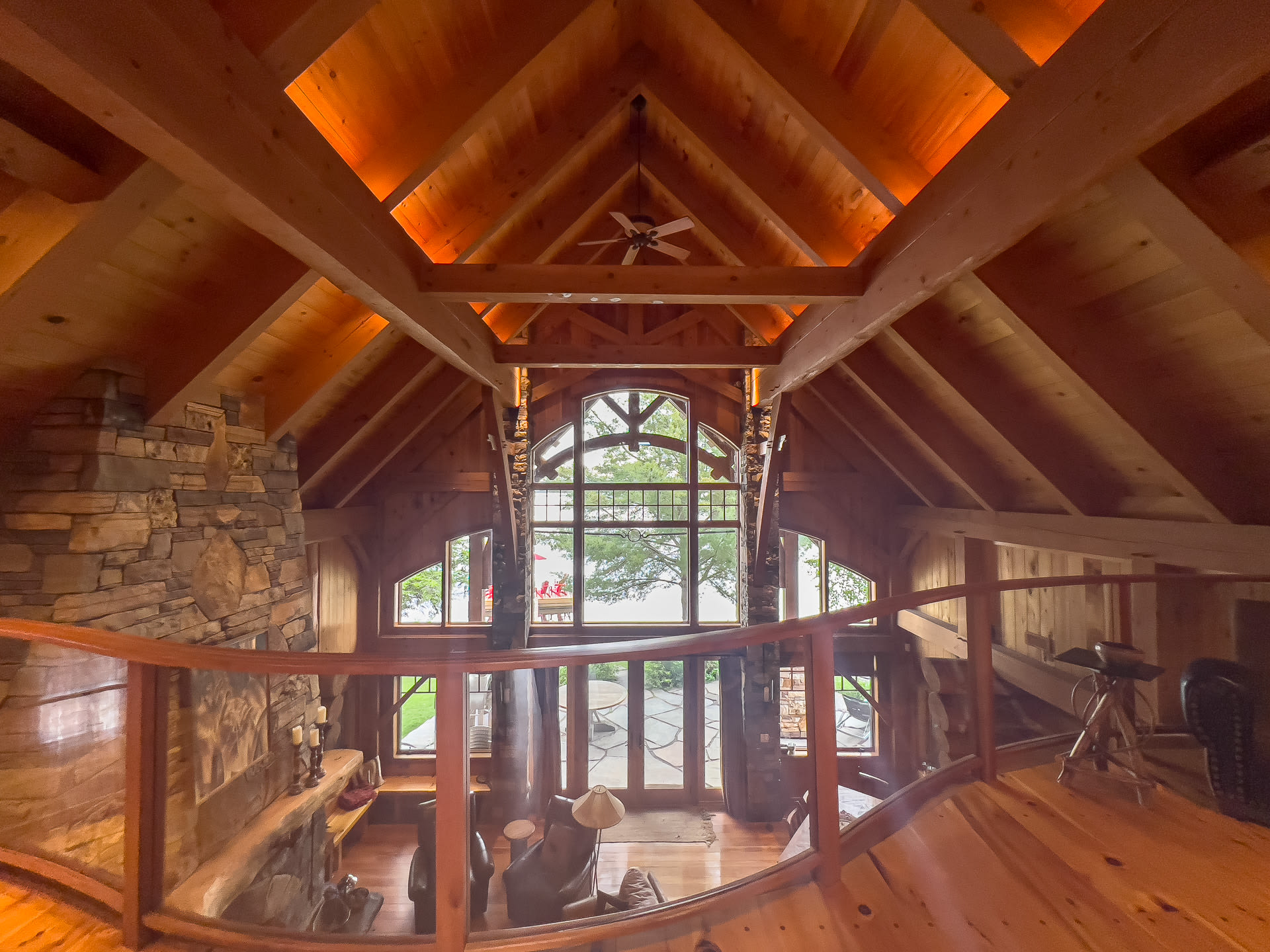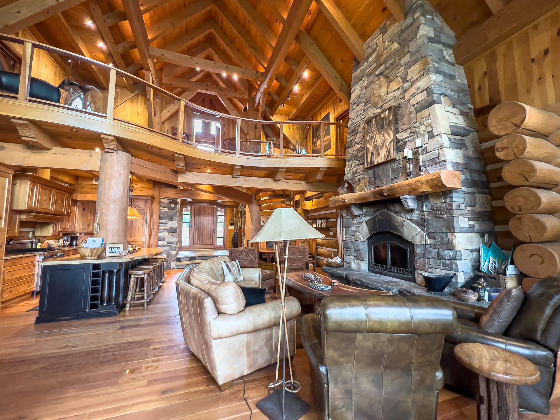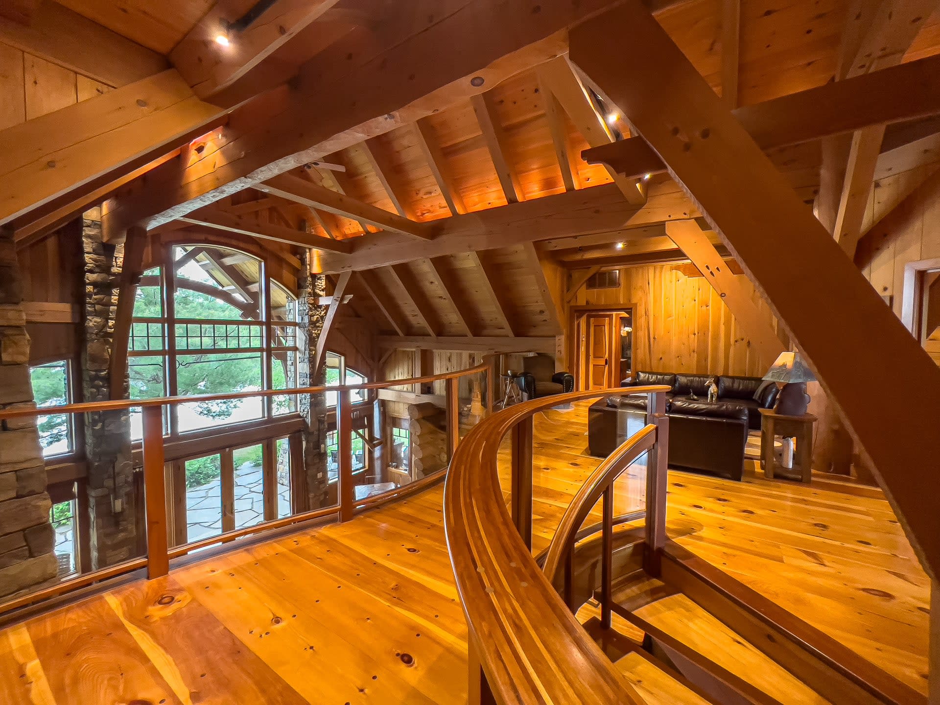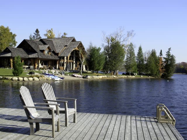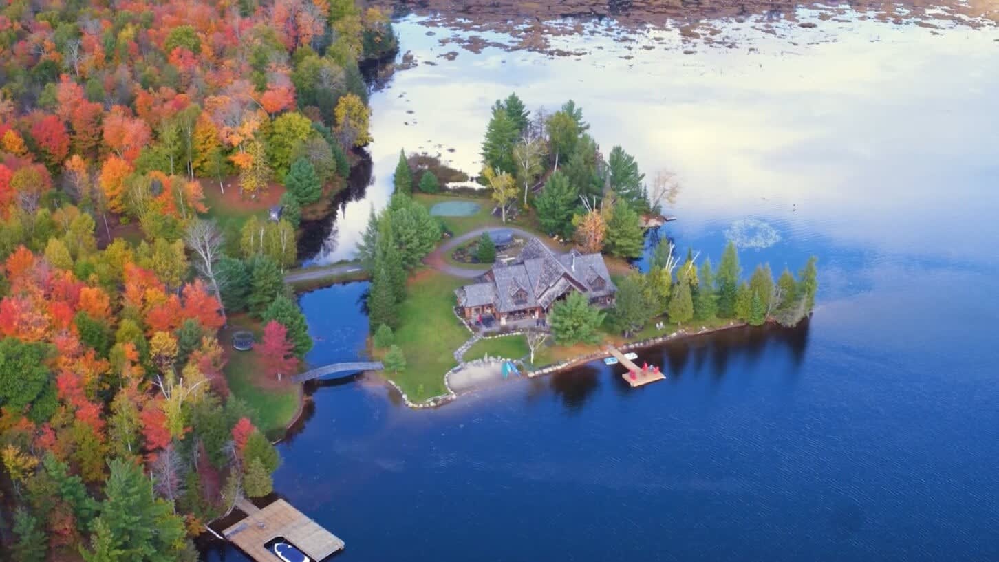 For discerning golf travelers and groups with refined tastes, this bespoke lakefront retreat, Timber Dream, stands unparalleled as your executive vacation home. Elevate your next Muskoka golf getaway at this extraordinary timber frame masterpiece, where stunning design features—like the curved stone floor, massive stone fireplace, and pine log radiating stairs—set the stage for unforgettable stays.