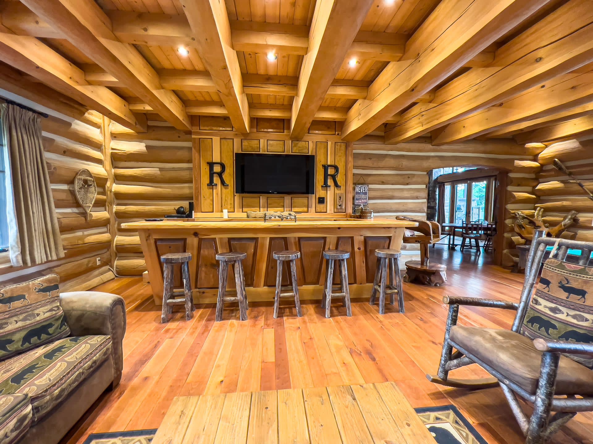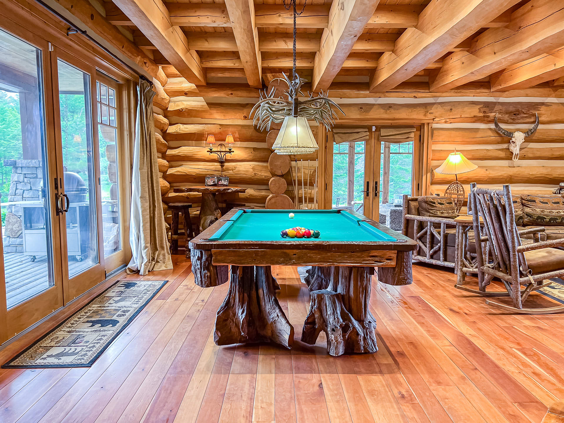 Marvel at the breathtaking views while unwinding in the dedicated games room, complete with a full-size pool table, wood bar, flat-screen TV, and cozy seating—perfect for post-round analysis, friendly competitions, or watching highlights with your buddies. Indulge in your very own pub setup, then step into the bright sunroom to soak up the sunshine and lake vistas as you recap birdies and bogeys.